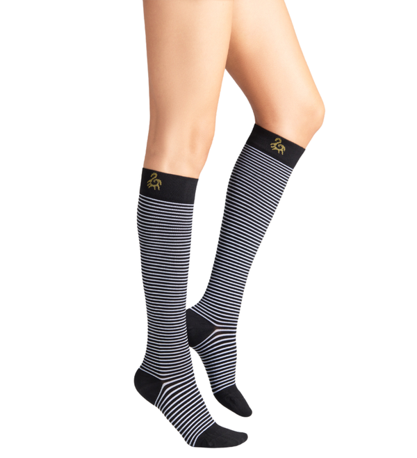 Solidea’s Stripe Game Polaris are unisex, striped knee-high compression socks delivering 15–21 mmHg graduated compression in a soft bamboo-viscose knit. They pair everyday, stylish stripes with true graduated support—firmer at the ankle, gentler up the calf—so legs feel lighter through long sitting, standing, or travel.