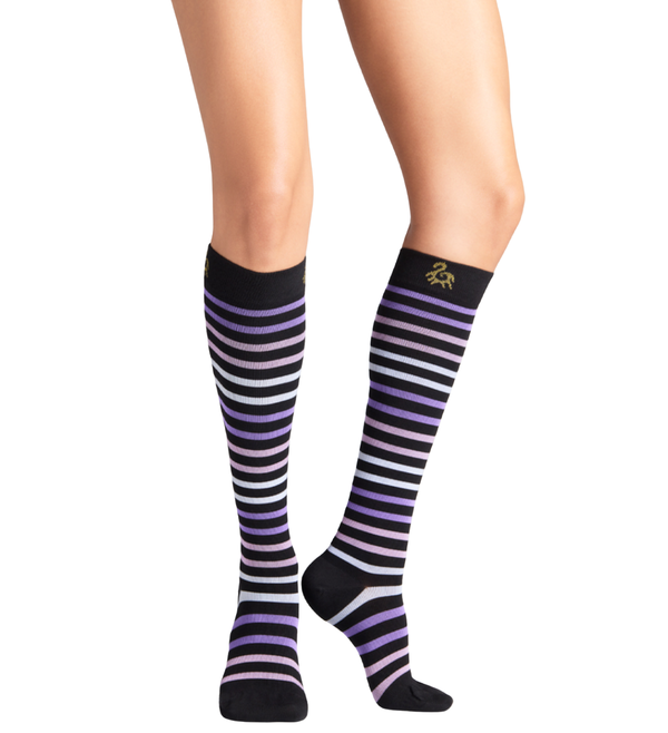 Solidea’s Stripe Game Fenice are unisex, striped knee-high compression socks delivering 15–21 mmHg graduated compression in a soft bamboo-viscose knit. They pair everyday, stylish stripes with true graduated support—firmer at the ankle, gentler up the calf—so legs feel lighter through long sitting, standing, or travel.